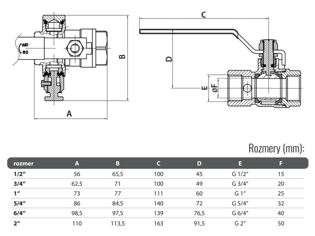 Závity: FF – vnútorný/vnútorný.