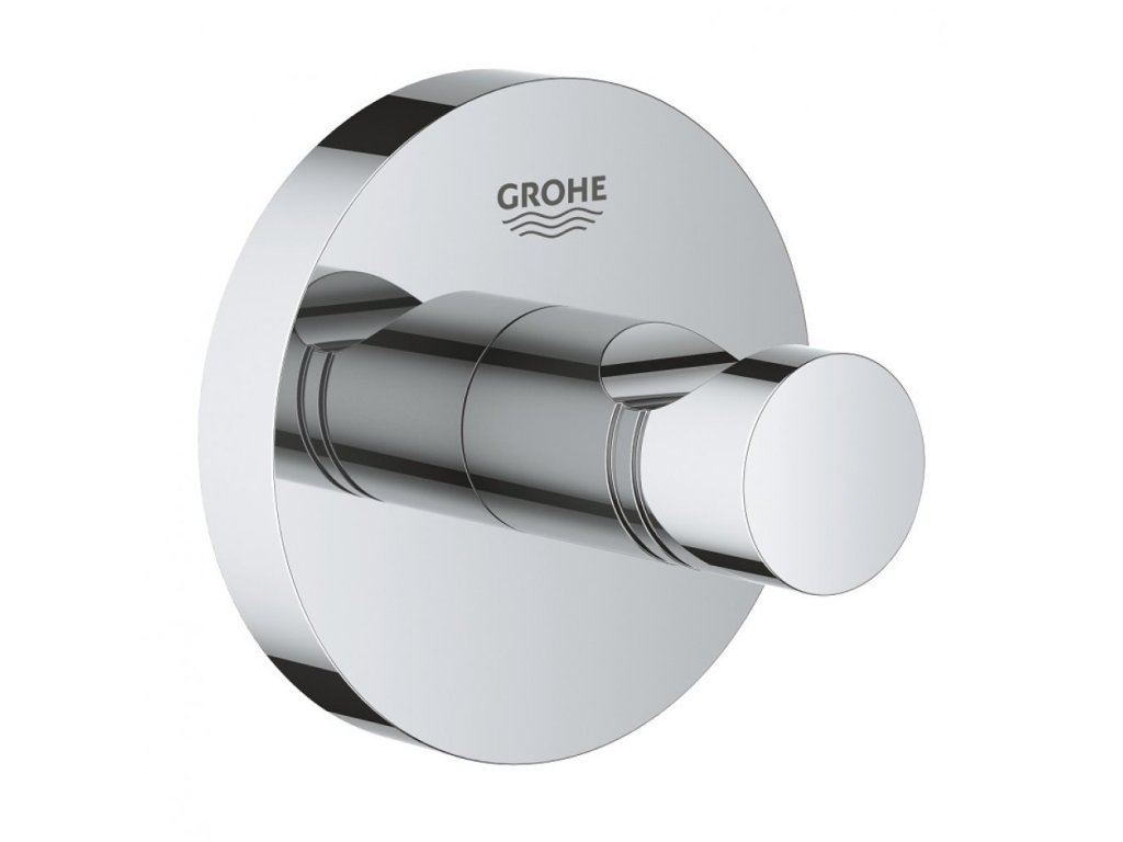 Robustný nástenný kovový háčik Essentials značky Grohe, vhodný na uterák či kúpací plášť.