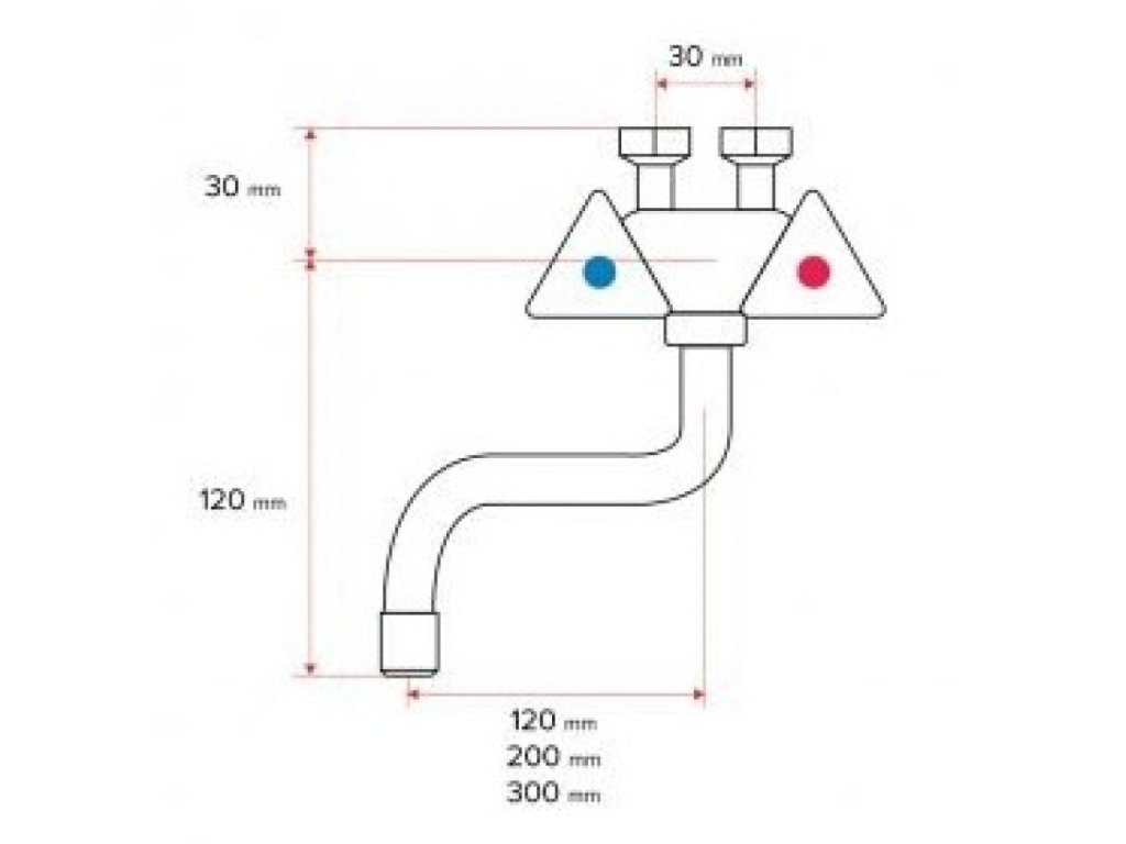 • klasická nízkotlaková stenová batéria pre ohrievače PM, s 20 cm dlhým výtokovým ramienkom tvaru "S".