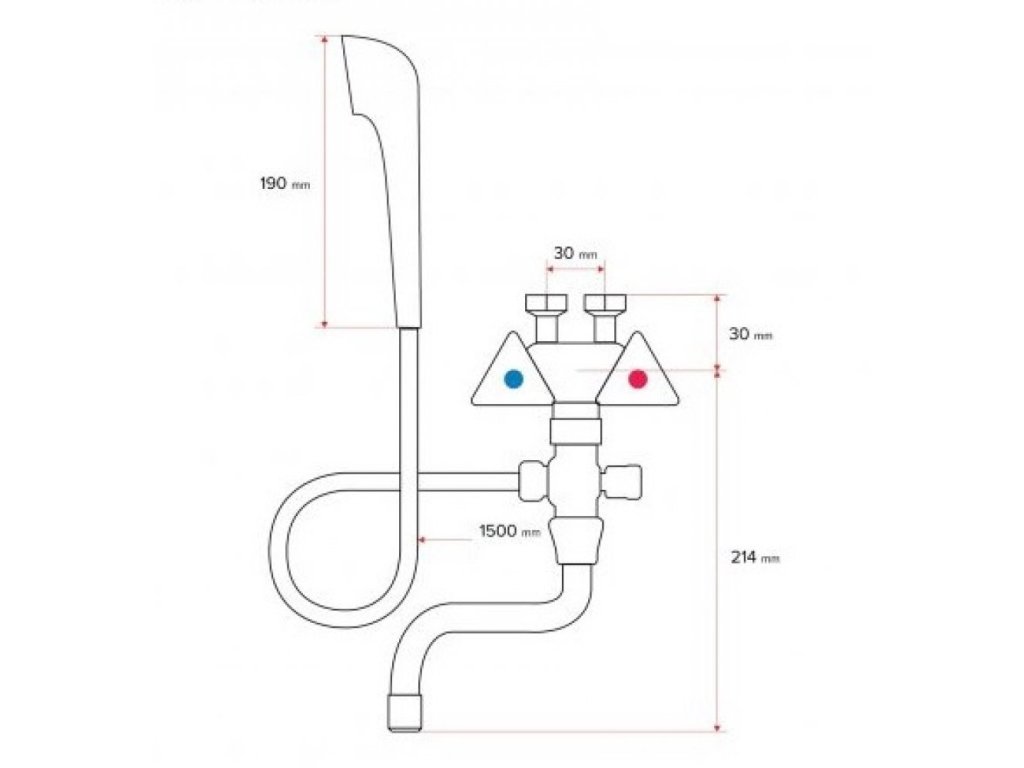 Trojcestná batéria nízkotlaková k ohrievaču, rameno 18cm, hadica 150cm