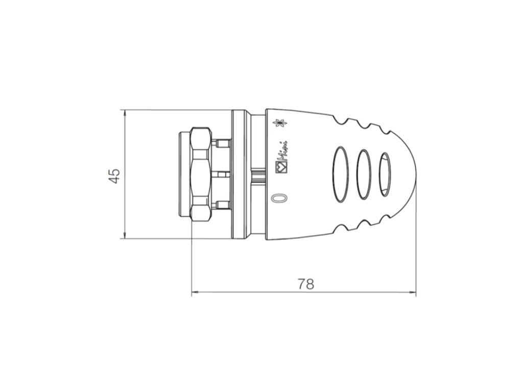 HERZ - Termostatická hlavica "Mini - DE LUXE”, s pripojovacím závitom pre termostatický ventil M28x1,5, dĺžka 7,5 cm, priemer 4,5 cm.