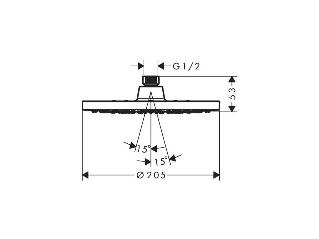 Sprchová hlavica Vernis Blend s guľovým kĺbom umožňujúcim nastaviť uhol hlavovej sprchy. Montáž na stenu/strop.