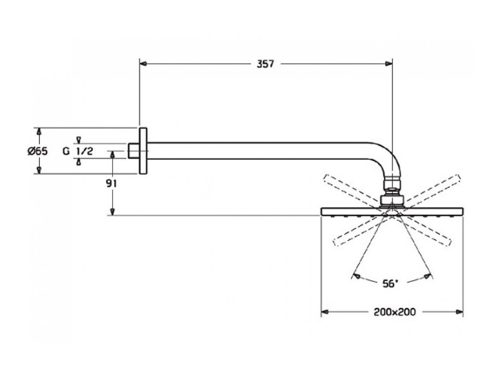 HANSAVIVA - tanierová hlavová sprcha s rozmerom 200 x 200 mm, so sprchovým ramenom a okrúhlou rozetou, s otočným guľovým kĺbom.