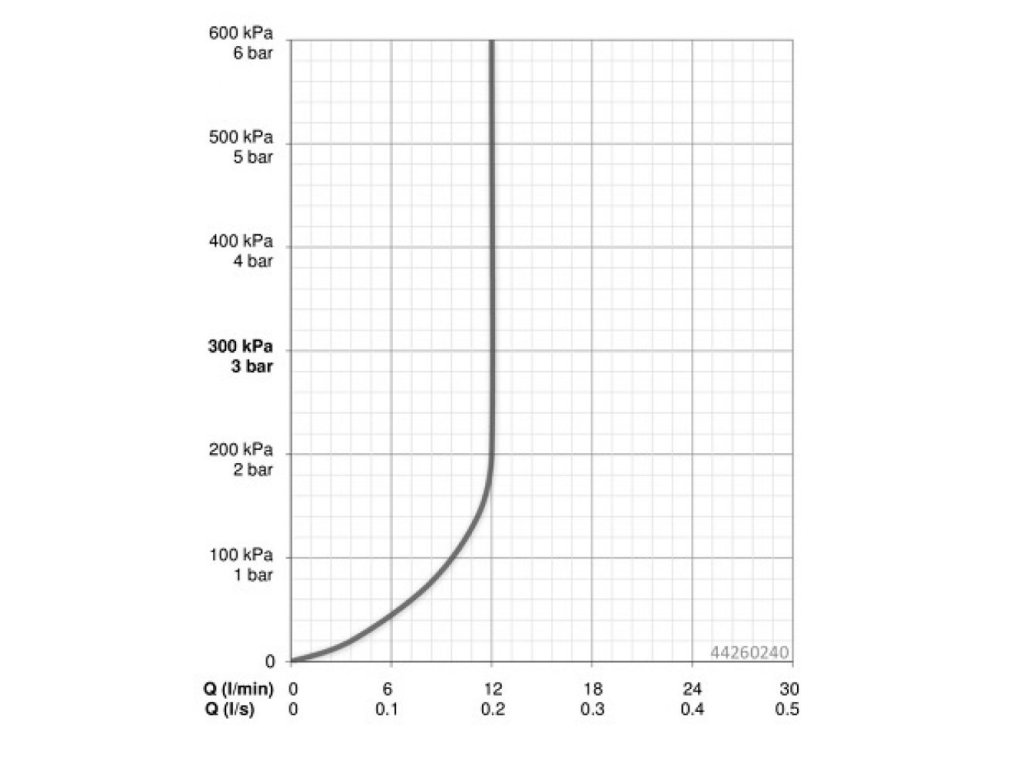 Prietokové množstvo (s ovládačom prietoku): 12 l/min., merané pri hydraulickom tlaku 3 bary.