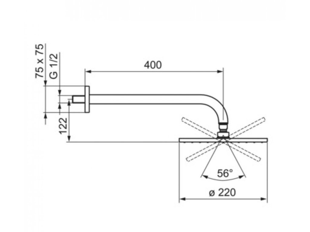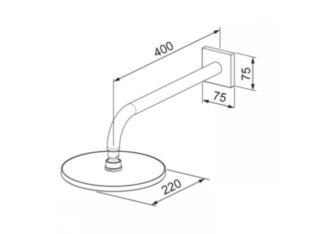 HANSARAIN - tanierová hlavová sprcha s priemerom 220 mm, so sprchovým ramenom a štvorcovou rozetou.