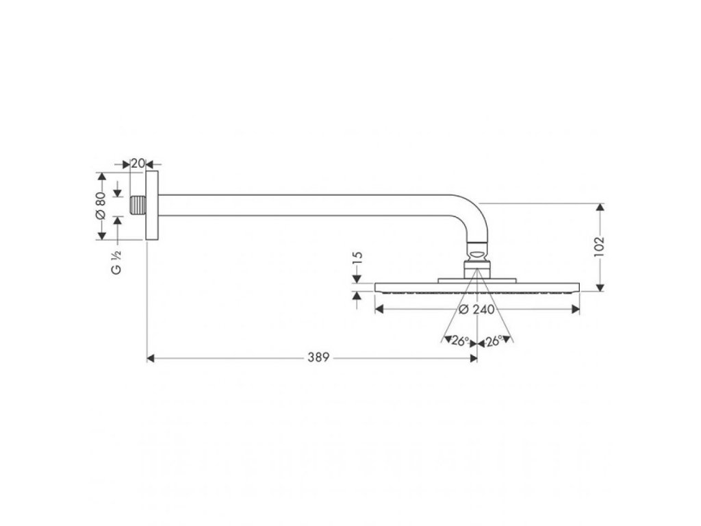 Sprchová hlavica Raindance S s priemerom 240mm. S guľovým kĺbom umožňujúcim nastaviť uhol hlavovej sprchy.