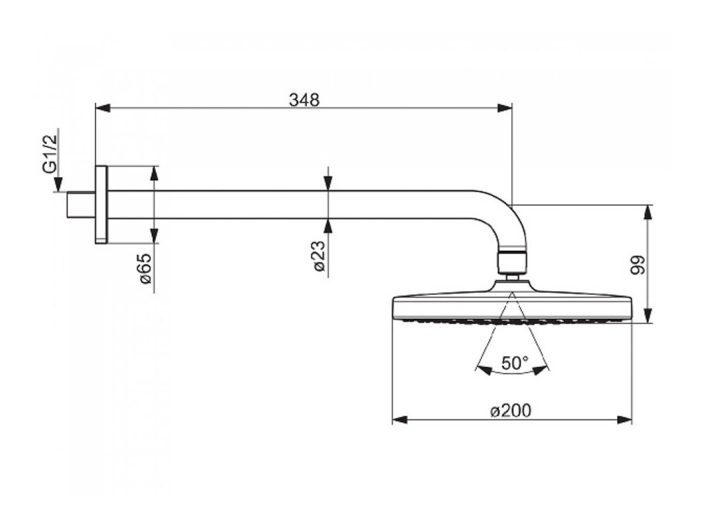Sprchová hlavica HANSABASICJET, 200mm + sprchové rameno, chróm