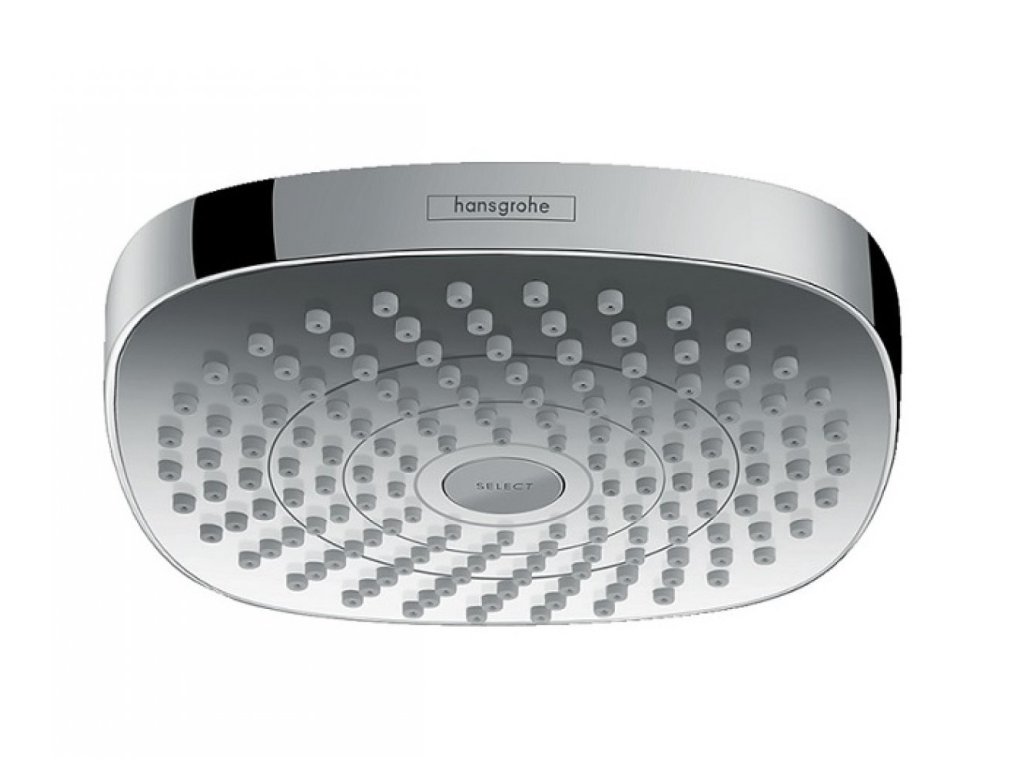 Sprchová hlavica Croma Select E s rozmerom 187x187mm. S guľovým kĺbom umožňujúcim nastaviť uhol hlavovej sprchy. Možno namontovať na stenu alebo strop.