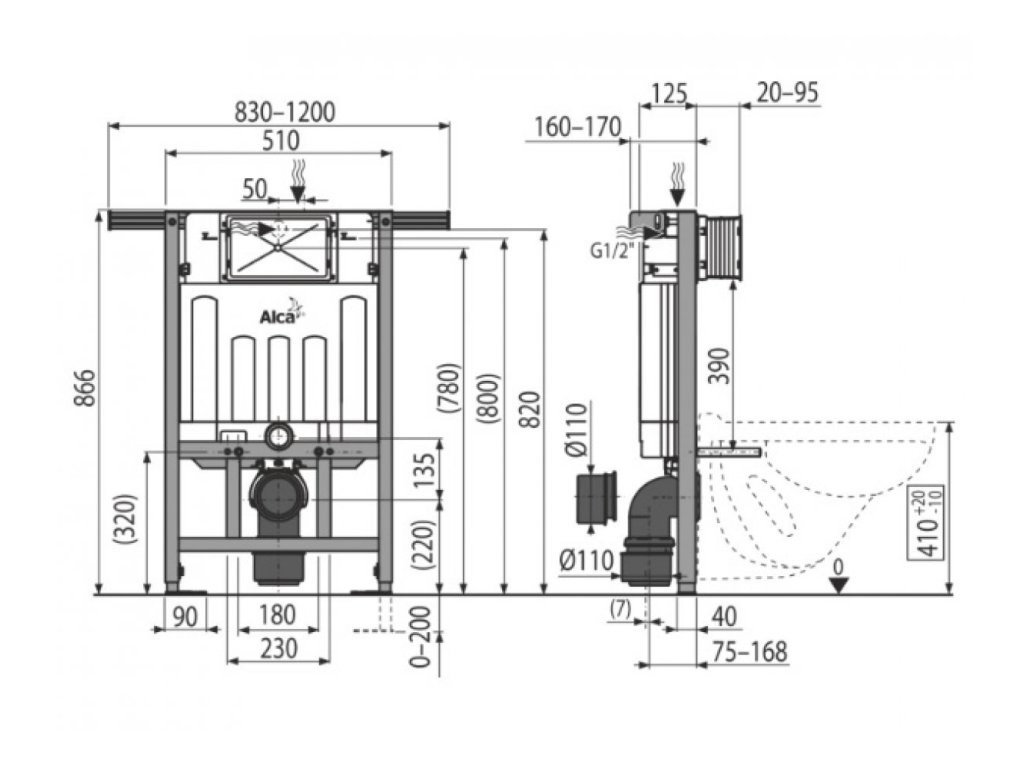 Pre montáž závesného WC s pripojovacím rozstupom 180 mm alebo 230 mm
