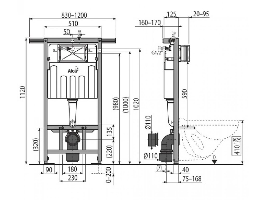 Pre montáž závesného WC s pripojovacím rozstupom 180 mm alebo 230 mm