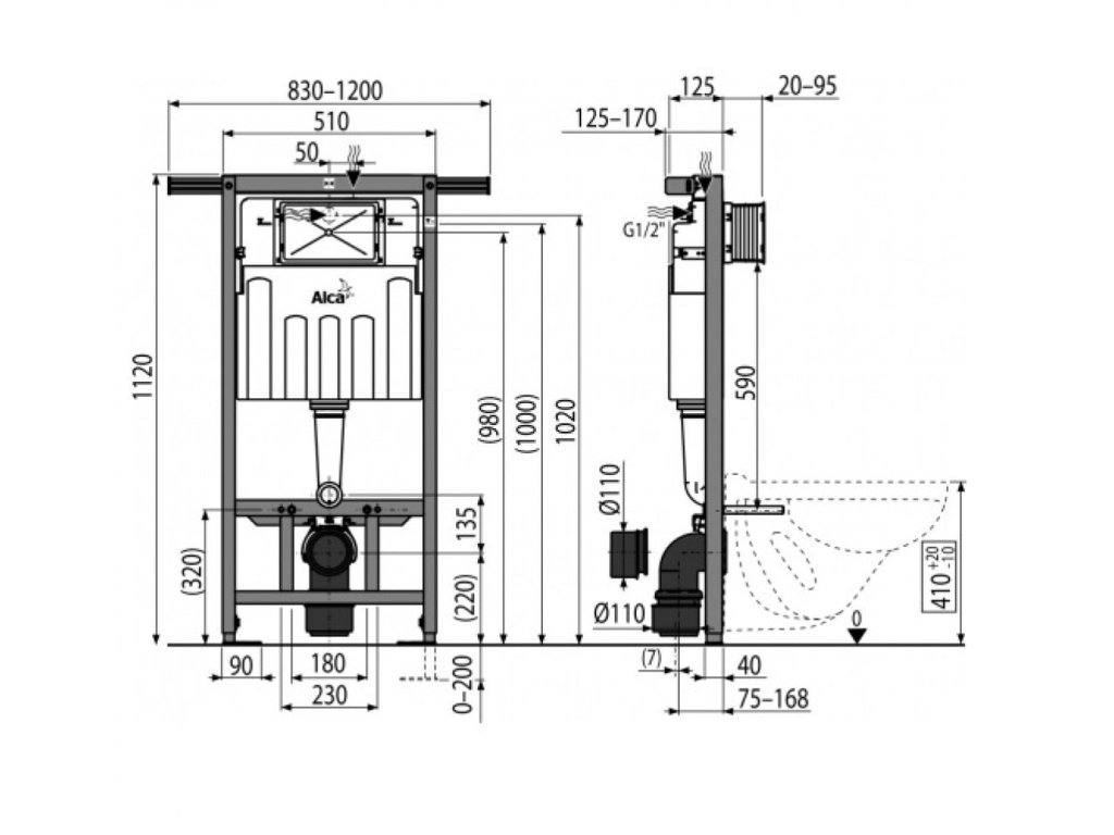 Predstenový inštalačný systém Jadromodul pre bytové jadrá, 1120mm
