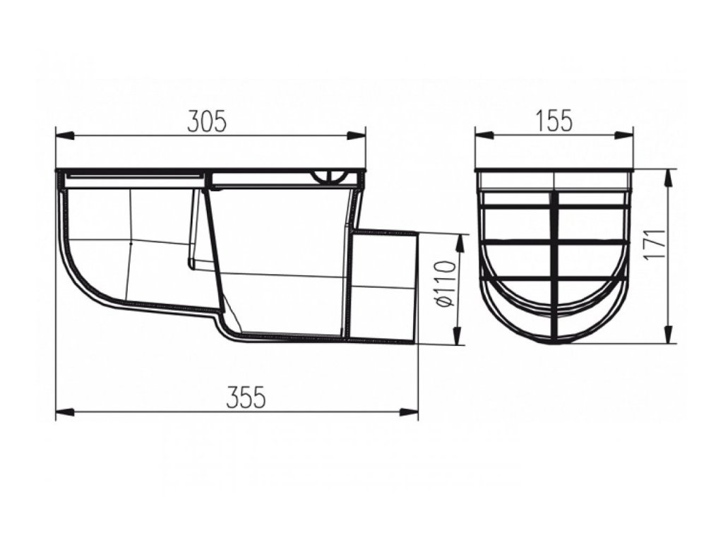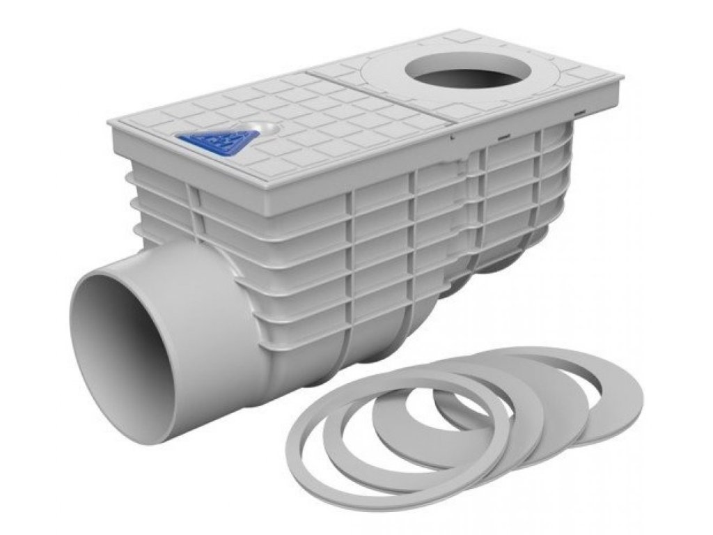 Použitie: pre odvod dažďových (povrchových) vôd do kanalizačných systémov mimo budov. Umožňuje pripojenie odkvapových zvodov.
