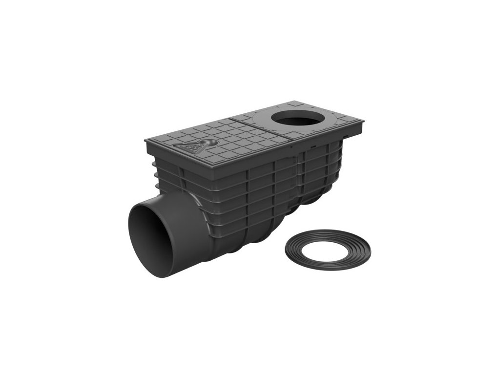 Použitie: pre odvod dažďových (povrchových) vôd do kanalizačných systémov mimo budov. Umožňuje pripojenie odkvapových zvodov.
