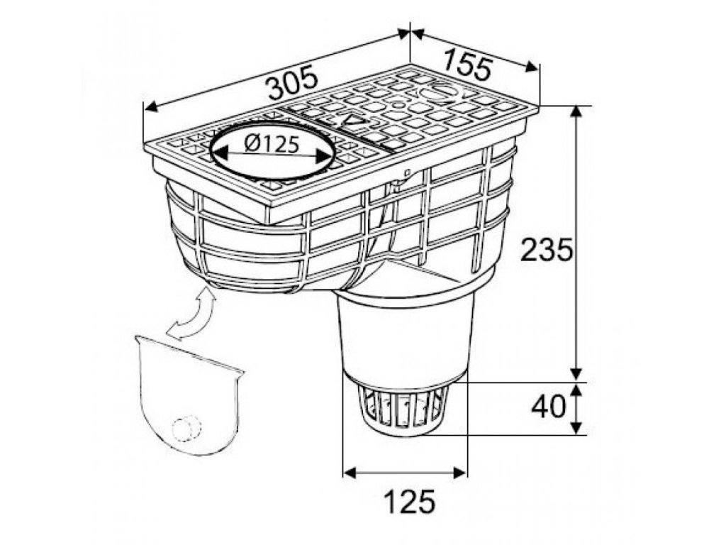 Použitie: pre odvod dažďových (povrchových) vôd do kanalizačných systémov mimo budov. Umožňuje pripojenie odkvapových zvodov.