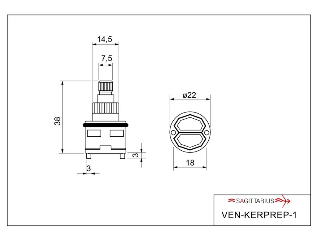 Náhradný keramický prepínač (len kartuša) pre vaňové batérie VENUS značky Sagittarius.