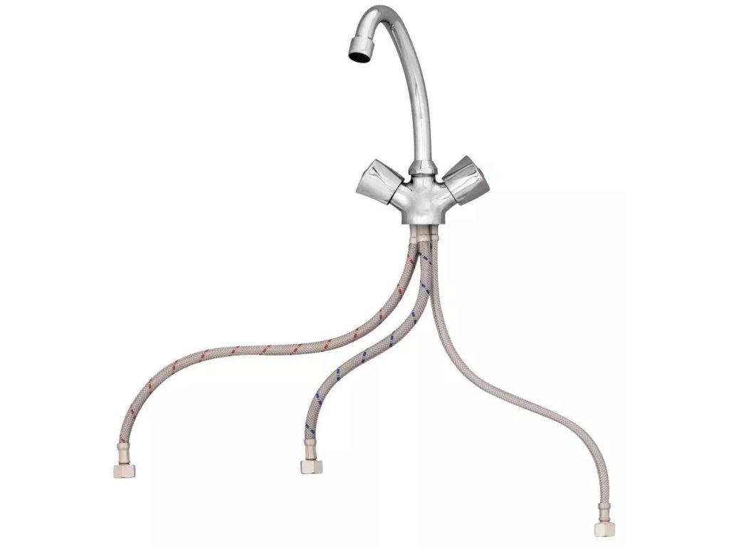 Trojcestná nízkotlaková poddrezová stojanková batéria SLIM značky Hakl, s klasickým - kohútikovým ovládaním.