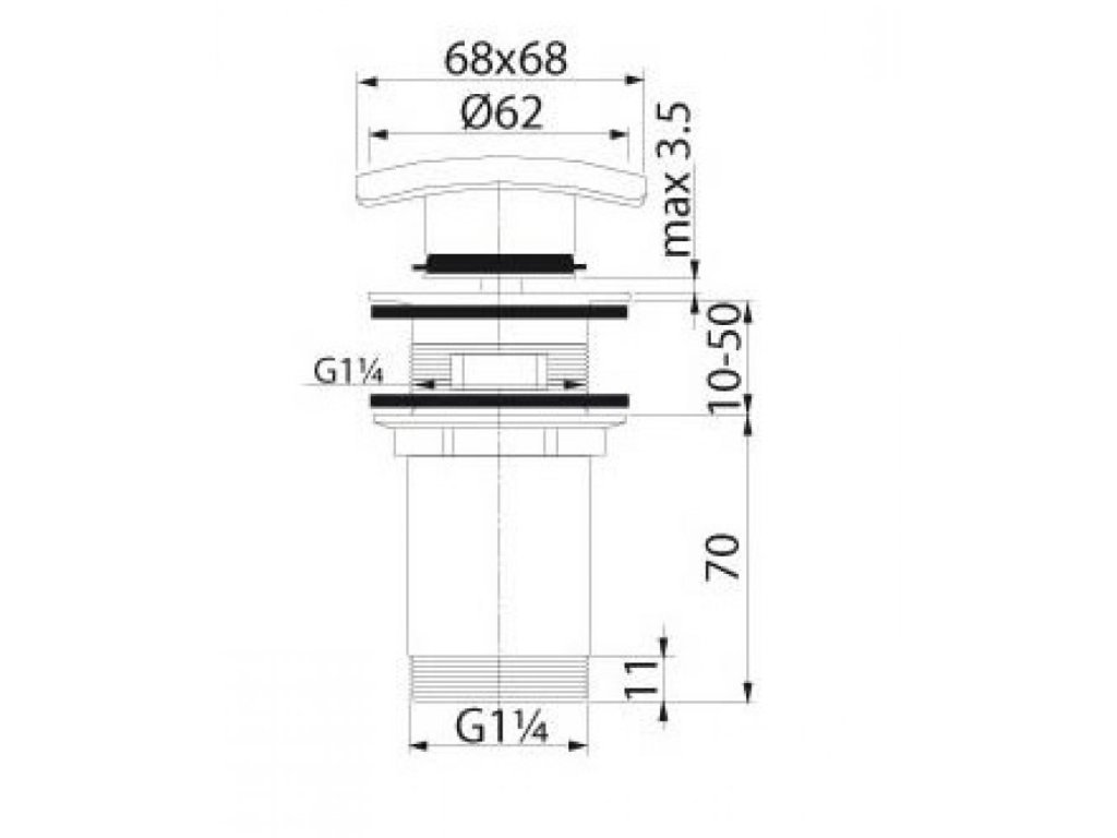 Umývadlová celokovová klik pileta s hranatou štvorcovou zátkou, G 5/4", značky Aquaristo Style.