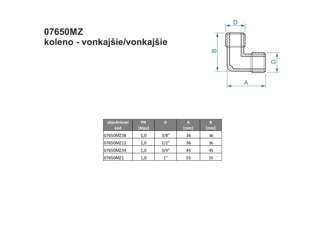 Koleno MM 90° mosadzné, 3/8" závit vonkajší/vonkajší