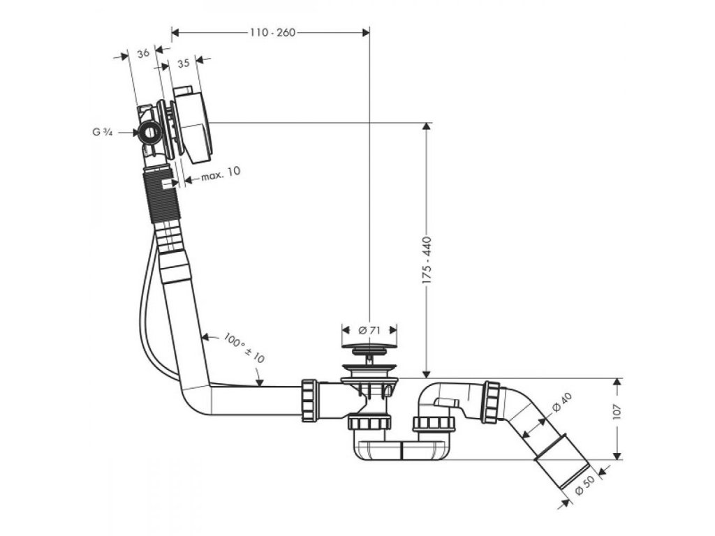 Odtoková a prepadová súprava na normálne vane EXAFILL S