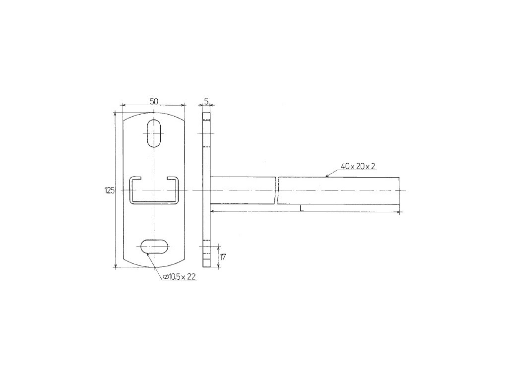 Konzola nosníková C 40x20x2mm, dĺžka 200mm, max. zaťaženie 90kg