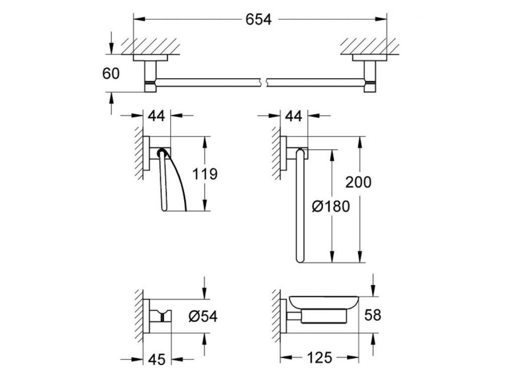 Sada kúpeľňových doplnkov 5v1, Essentials značky Grohe obsahuje: