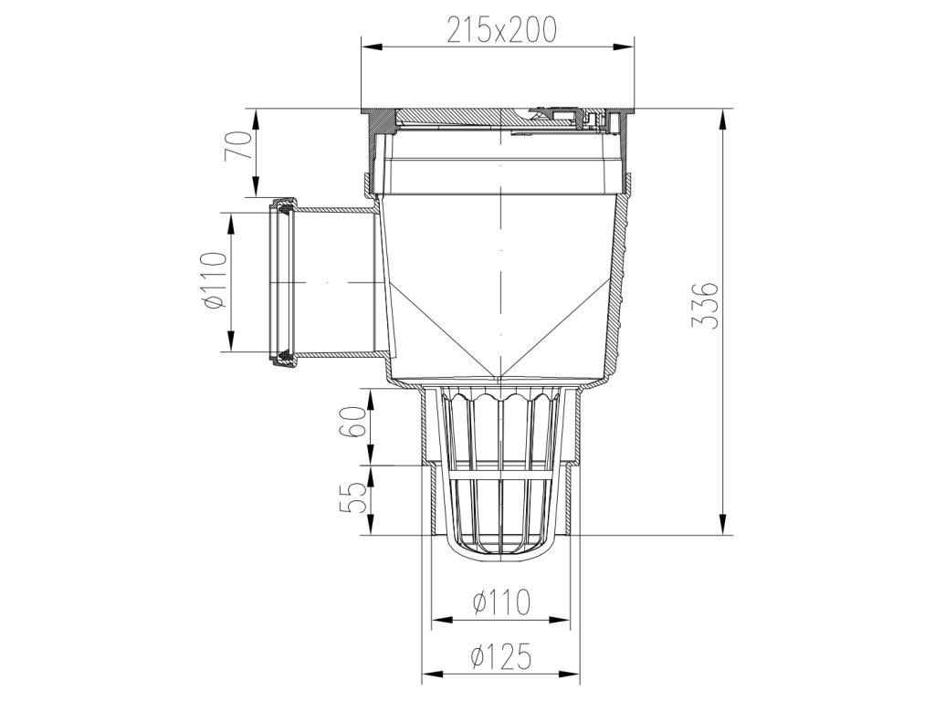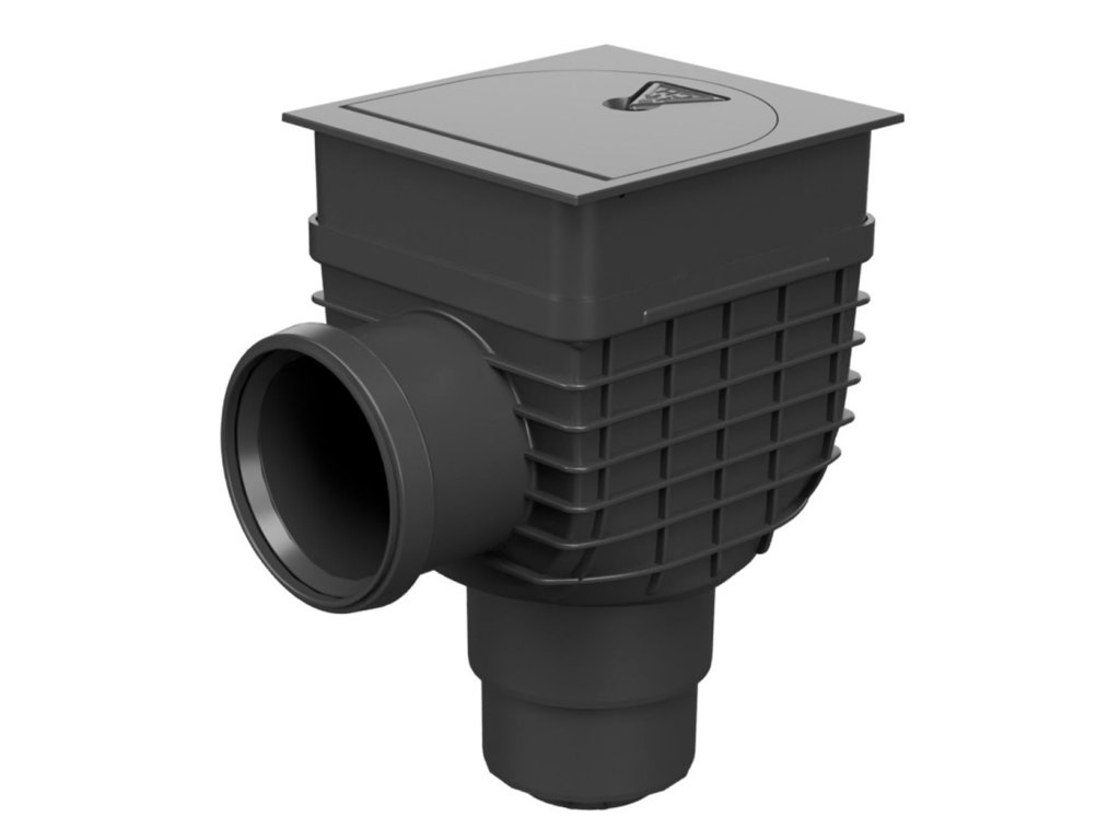 Robustný a odolný výrobok, ktorého konštrukcia je spevnená rebrovaním, čo zabezpečuje vyššiu pevnosť a stabilitu v zemi. Obsahuje protizápachovú klapku, ktorá účinne bráni spätnému prenikaniu zápachu z kanalizácie do okolia, a košík na zachytávanie nečistôt, čím sa predchádza upchatiu potrubia.