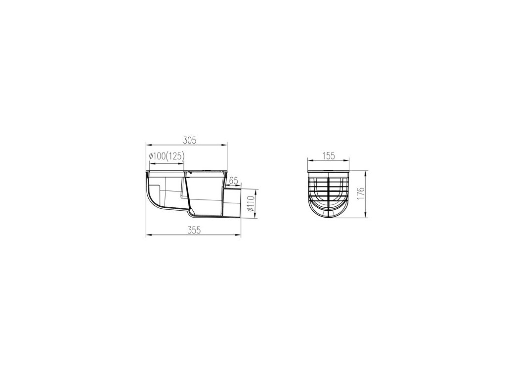 Lapač strešných splavenín D110 bočný, pre zvod d125mm - liatinový