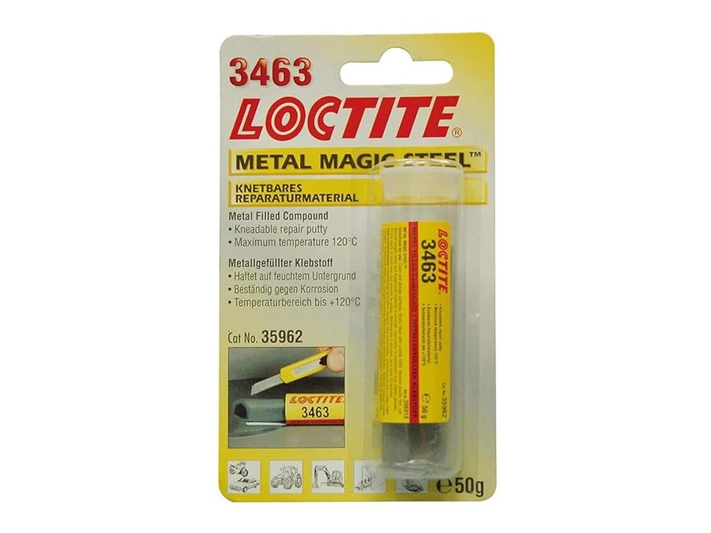 Loctite EA 3463 je všestranný dvojzložkový epoxidový tmel, oceľou plnená hnetacia tyčinka pre núdzové opravy, s jednoduchým použitím. Po vytvrdnutí má vysokú pevnosť v tlaku a dobrú adhéziu k väčšine povrchov. Hmota priľne k vlhkému povrchu a tuhne aj pod vodou. Odolná je voči chemickým vplyvom a korózii. Je vhodná k následnému mechanickému opracovaniu: je možné jú vŕtať, plniť aj natierať.