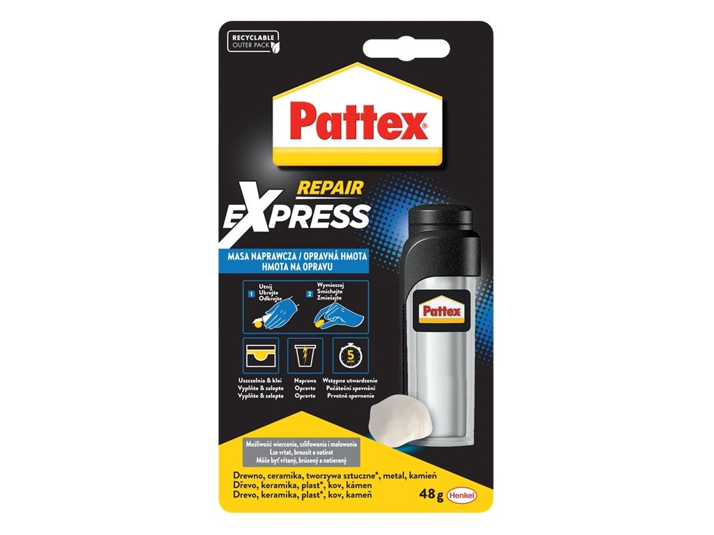 Lepidlo Pattex Repair Express NEW značky Henkel je spoľahlivá voľba pre každého, kto potrebuje rýchlo a efektívne opraviť, zalepiť alebo zatmeliť. Ide o bielu epoxidovú hmotu s jednoduchým použitím a všestranným využitím – doma, v dielni aj na chalupe.