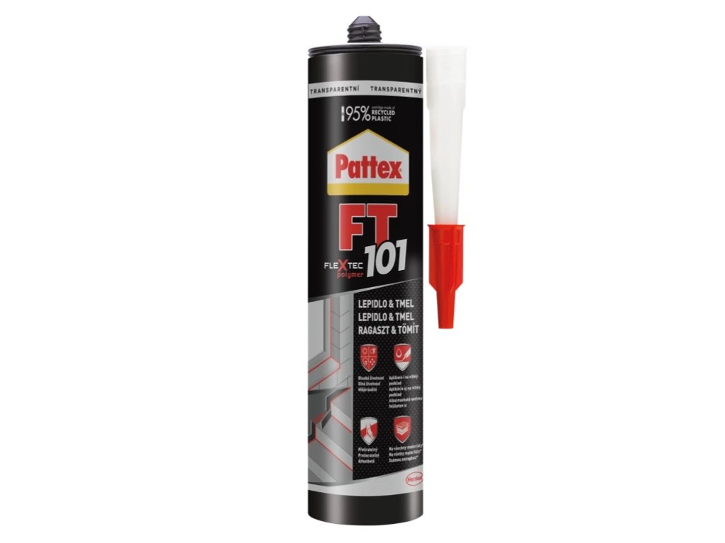 Elastický tmel a viacúčelové lepidlo Pattex FT101 na použitie v interiéri a exteriéri na báze technológie Flextec©.