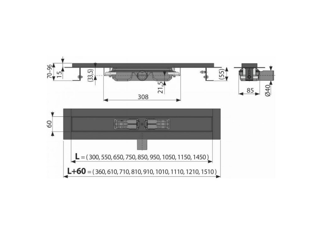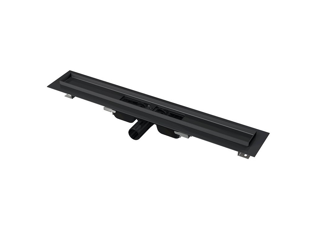 Sprchový žľab LOW čierny, s okrajom pre perforovaný rošt - dĺžka 300mm
