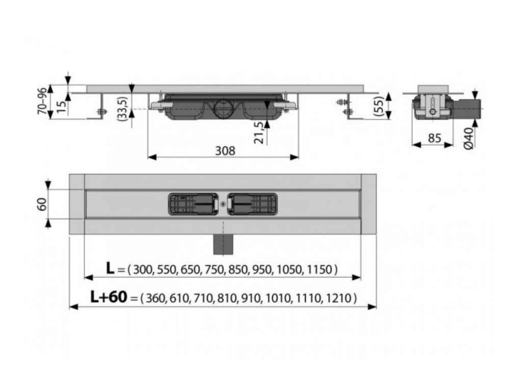 Sprchový žľab LOW nerezový, s okrajom pre perforovaný rošt - 1450mm