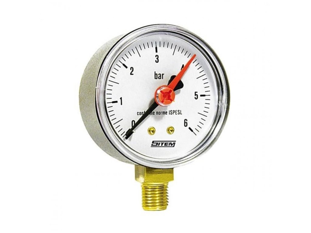 Manometer spodný 1/4", DN 63, tlakový rozsah 0-6 bar