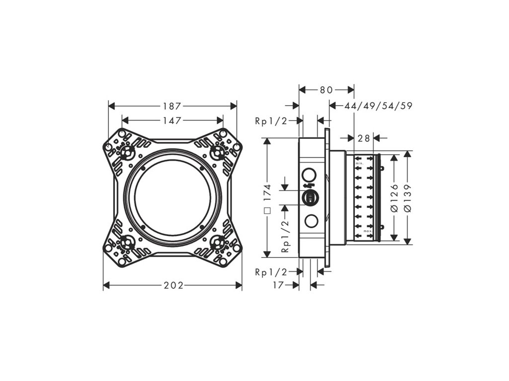 Základné podomietkové teleso pod omietku iBox universal 2 je vhodné pre všetky nové podomietkové vrchné sady pre sprchy, vane a termostaty.