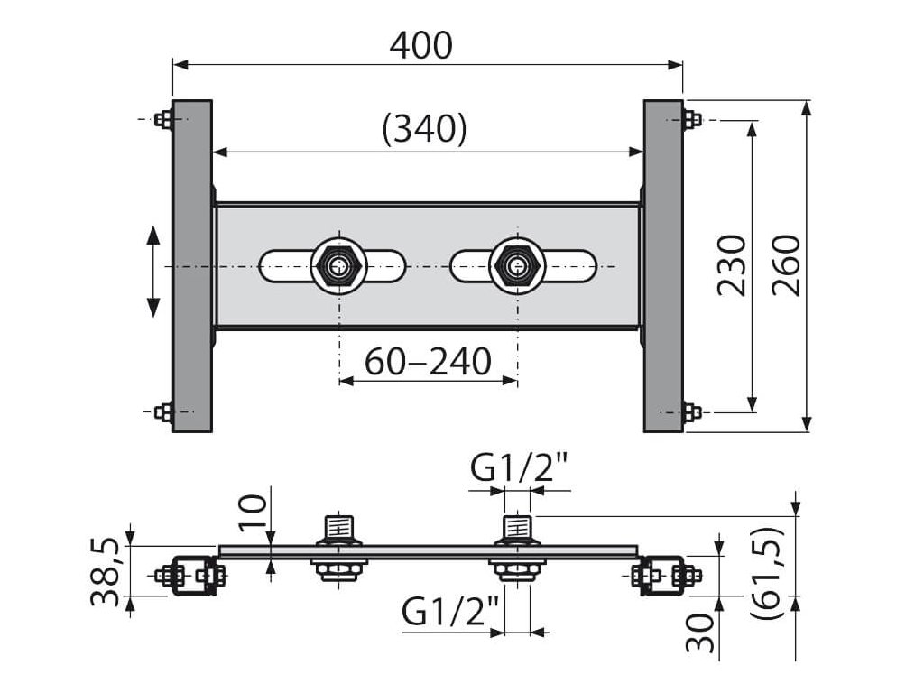 Priečka pre uchytenie nástennej armatúry s rozstupom 60–240 mm