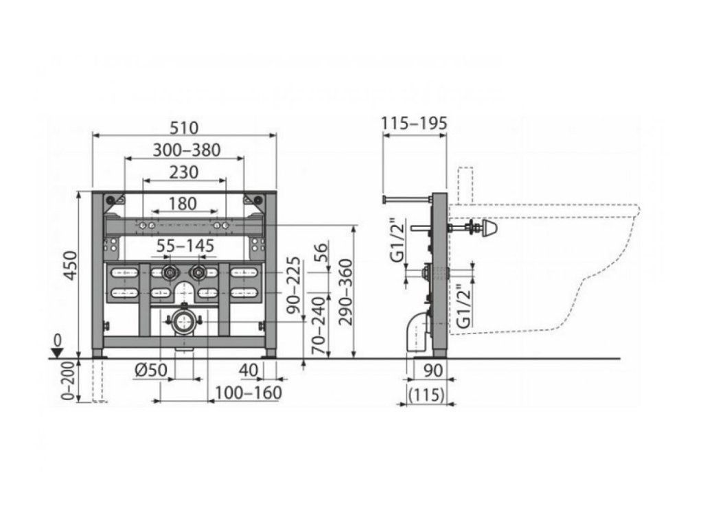 Montážny rám Alcadrain pre bidet a pre závesné WC
