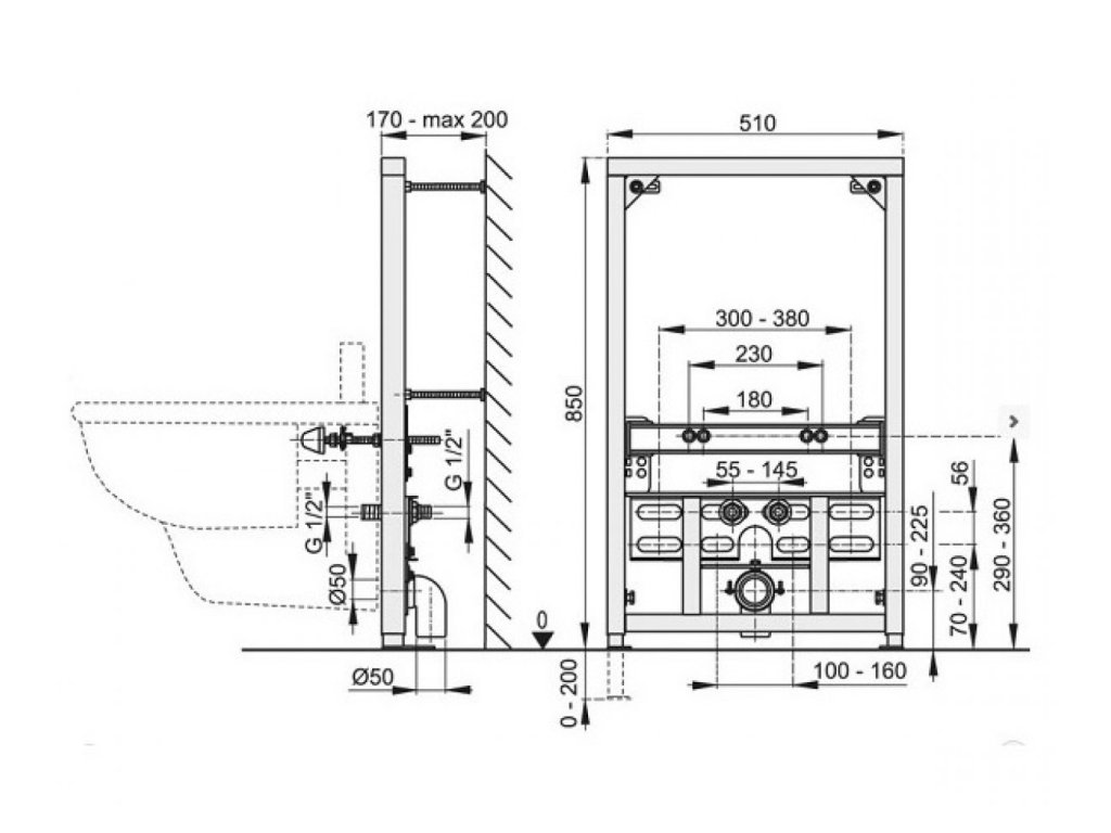 Montážny rám Alcadrain pre závesné WC a bidet - stavebná výška 0,85m