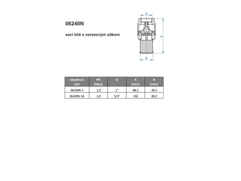Sací kôš so spätnou klapkou a nerezovým sitkom 5/4"