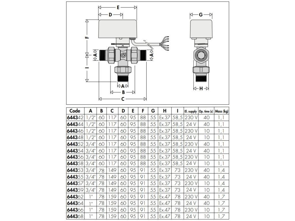 Motorizovaný trojcestný guľový prepínací ventil, G 1/2", 230V