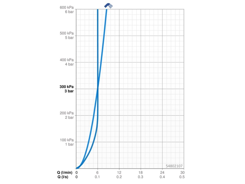 Prietok meraný pri hydraulickom tlaku 3 bar (vaňa/sprcha): 6 l/6 l/min.