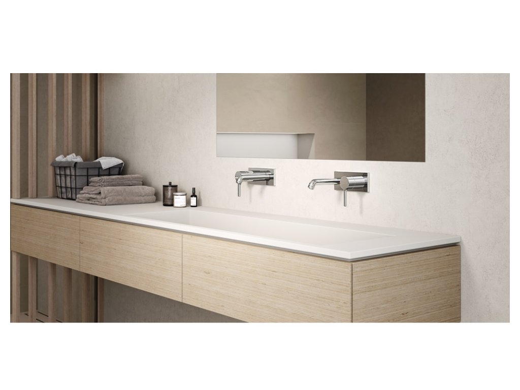 HANSAVANTIS Style značky Hansa - nadomietková časť podomietkovej batérie, s pevným výtokovom ramenom, s PIN-tyčinkovou pákou so symbolom teplej a studenej vody.