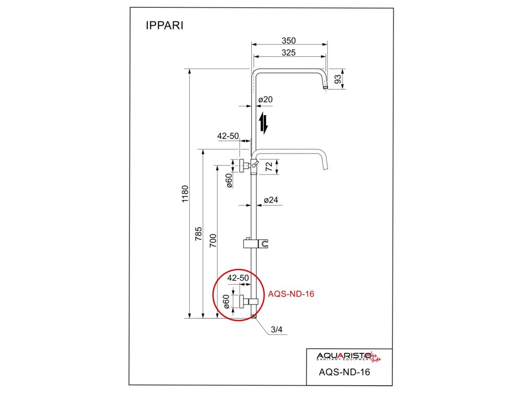 Náhradný úchyt na stenu pre tyč Ippari. Diel slúži k ukotveniu spodnej časti tyče Ippari v prípade, ak nie je napojená priamo k vodovodnej batérii, ale k jej pripojeniu ku zdroju vody je využitá napríklad prepojovacia hadička.