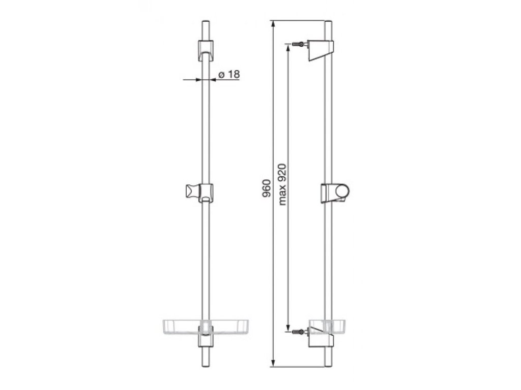 • sprchová tyč s nastaviteľnou roztečou úchytov, dĺžka 920 mm, o 18 mm