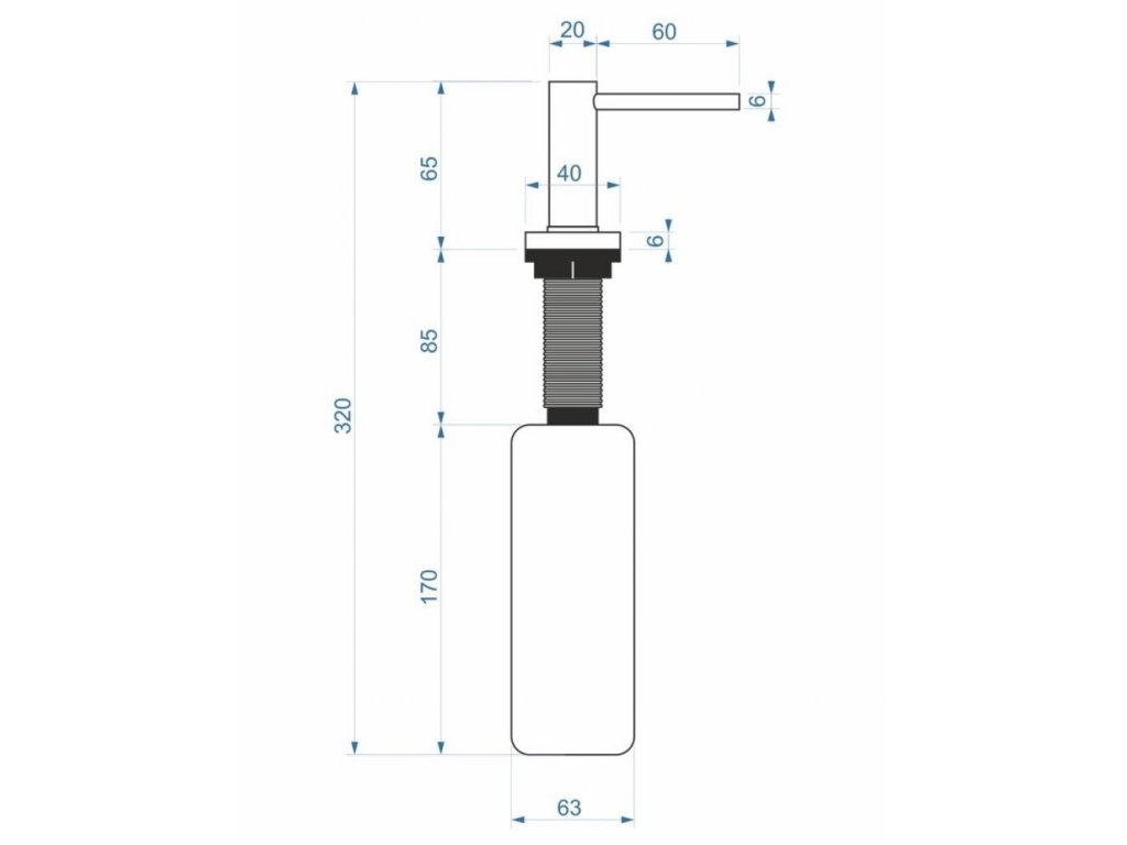 Zabudovateľný dávkovač umývacieho prostriedku SLIM značky Aquaristo Style. S plastovou nádobkou. Plnenie nádobky zhora po vytiahnutí pumpičky.