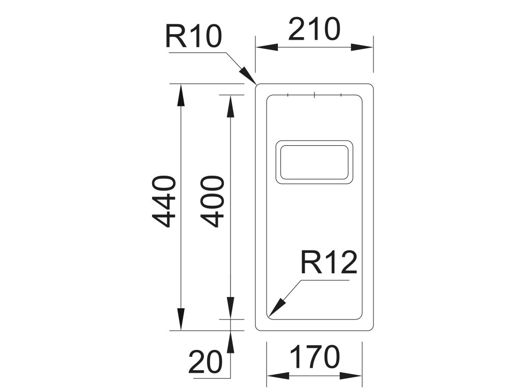 Vonkajšie rozmery drezu: 210 x 440 mm.