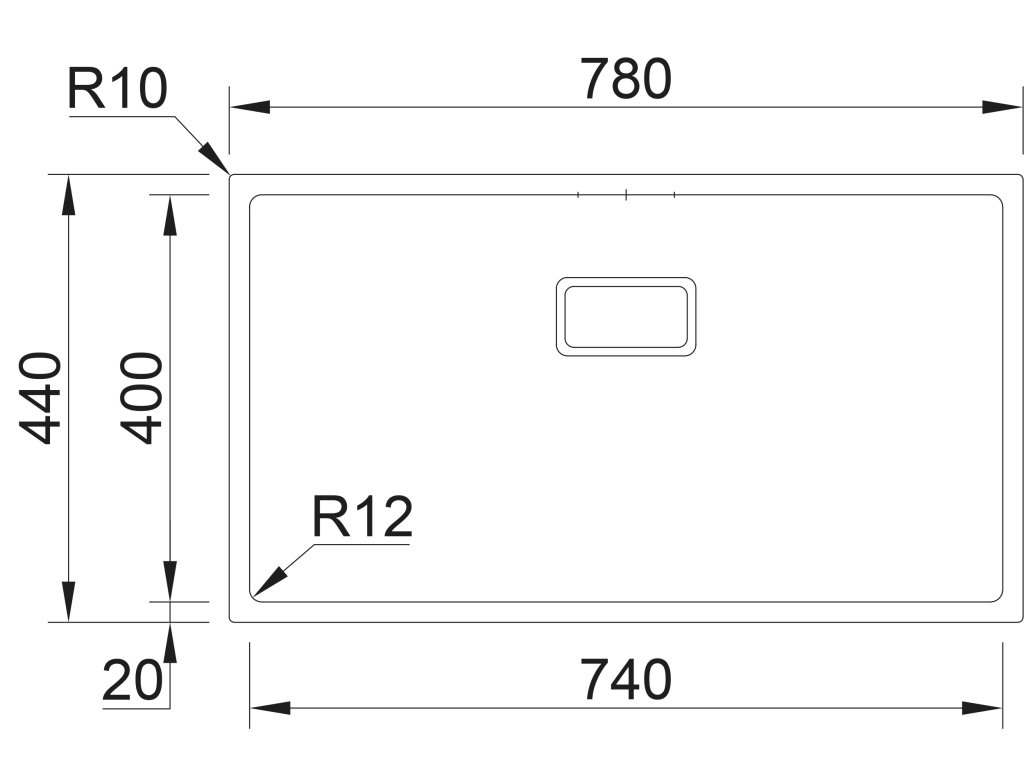 Vonkajšie rozmery drezu: 780 x 440 mm.