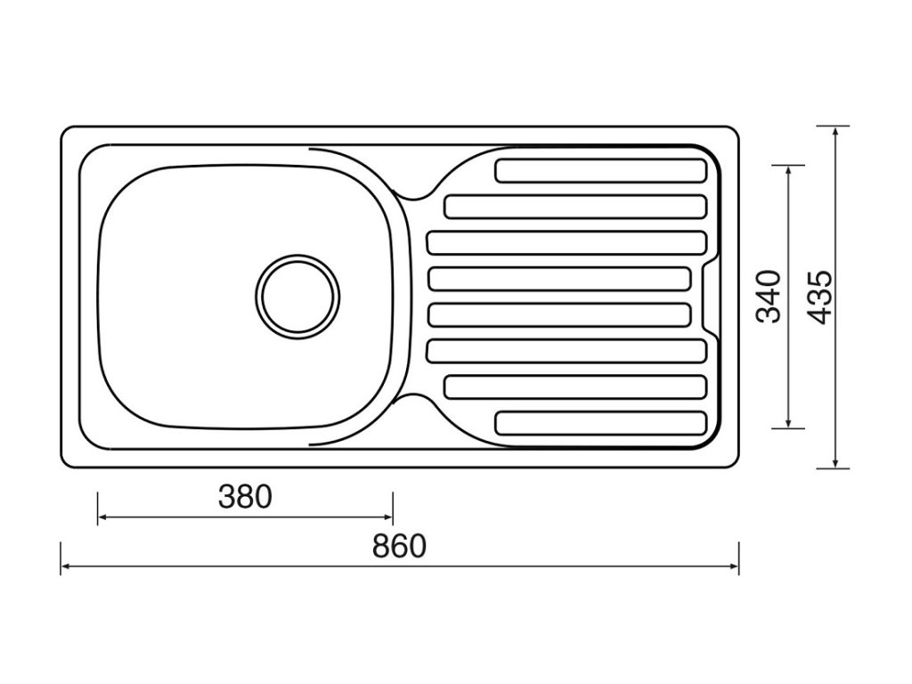 Vonkajšie rozmery drezu: 860 x 435 mm.