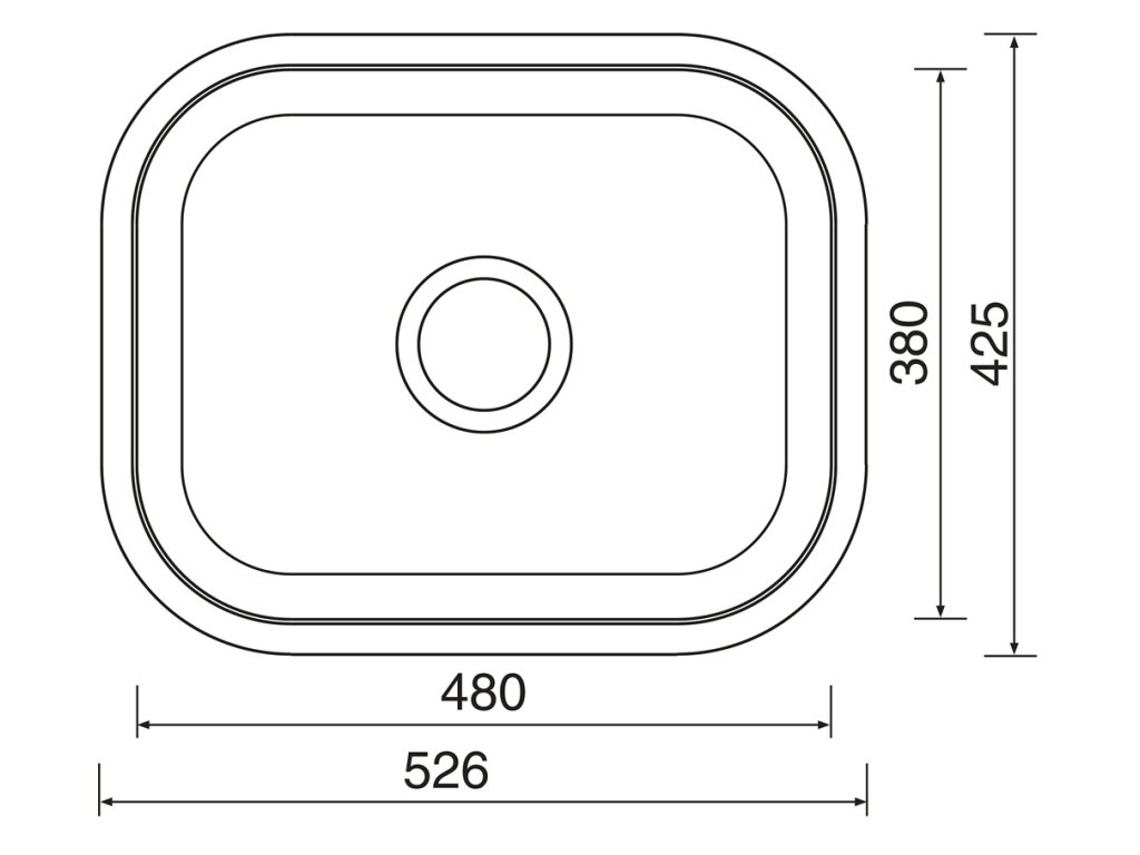 Vonkajšie rozmery drezu sú: 526 x 425mm.