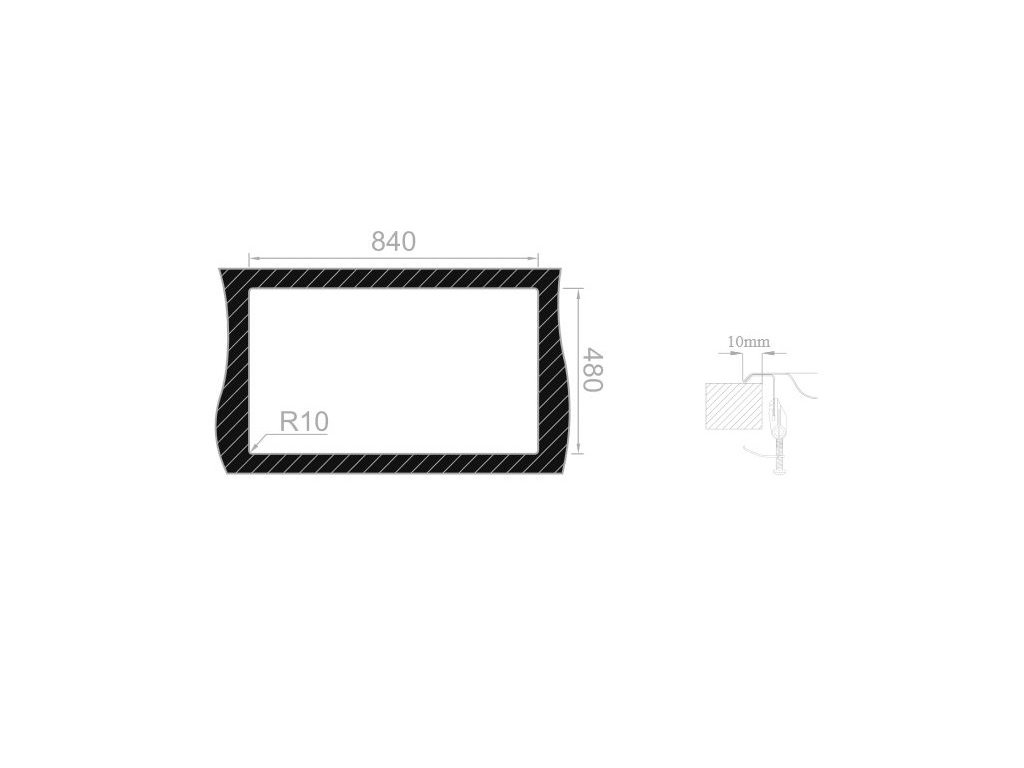Vonkajšie rozmery drezu: 860 x 500 mm.