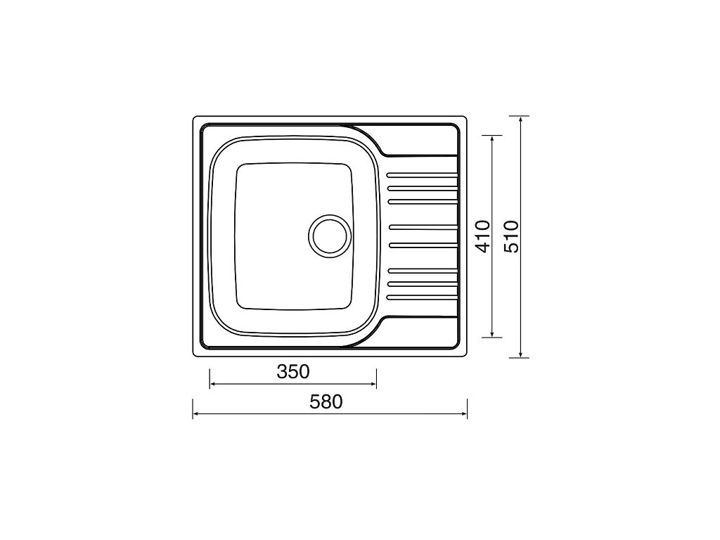 Vonkajšie rozmery drezu: 580 x 510 mm.